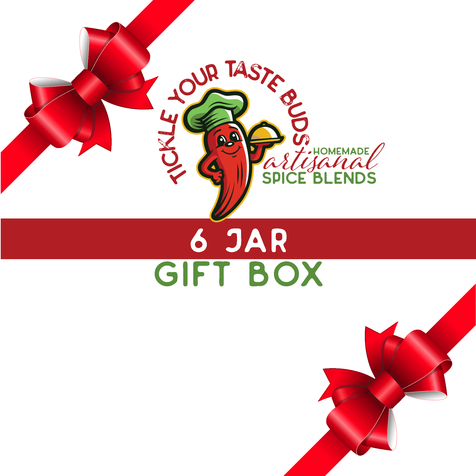 A perfect gift for the culinary master in your life, this 6-jar gift box will be sure to delight. Mix and match from any 6 of our spice blends, placed in plain white gift box suitable for wrapping.